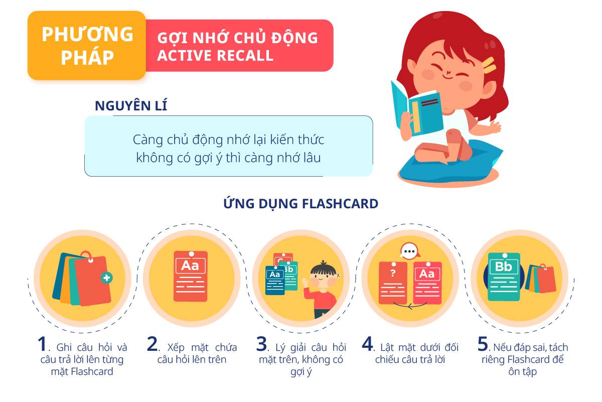 - Active Recall (Chủ động gợi nhớ): Sau khi đọc xong một trang sách, hãy gấp sách lại và tự hỏi mình: “Mình vừa học được điều gì?”.