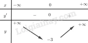 Tại (x = 0), (y’) đổi dấu từ âm sang dương. Do đó, hàm số đạt cực tiểu tại (x = 0). Giá trị cực tiểu là (y_{CT} = (0)^4 + 2(0)^2 – 3 = -3).