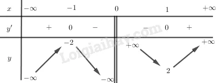 - Với (-1 < x < 0), chọn (x = -0.5): (y’ = frac{(-0.5-1)(-0.5+1)}{(-0.5)^2} = frac{(-1.5)(0.5)}{0.25} = frac{-0.75}{0.25} = -3 < 0). Hàm số nghịch biến.