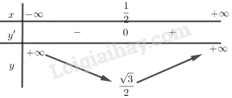 Giá trị cực tiểu là (y_{CT} = sqrt{(frac{1}{2})^2 – frac{1}{2} + 1} = sqrt{frac{1}{4} – frac{2}{4} + frac{4}{4}} = sqrt{frac{3}{4}} = frac{sqrt{3}}{2}).